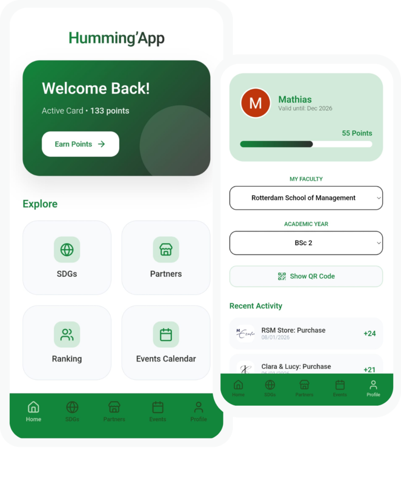 When you buy at one of our partners’ shops or take part in our sustainable or responsible actions, you earn Humming’Points that give you access to better discounts and that, most importantly, allow you to beat your friends in the ranking!